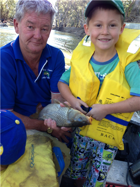 In the Swan Hill region we're incredibly lucky to live in the midst of 5 rivers, and on one of the longest rivers in the world - the Mighty Murray River, which has had, and continues to have it's share of environmental struggles like black water, salinity, European carp etc. These are truly magnificent natural resources we have here, which allows the production of some of the finest foods in the world in our fruit & vegetable domestic and export markets and our growing nut exports further downstream. I do believe it's important to teach our young people the importance of such brilliant rivers and how to look after themselves when around it, and how to nurture the longevity of the river itself. So taking my boys out on the river is such an important exercise in so many ways. For the grandson's it was all about fun and fishing. Result of 1 hour fishing = 16 e European carp and loads of smiles and fun had by all.